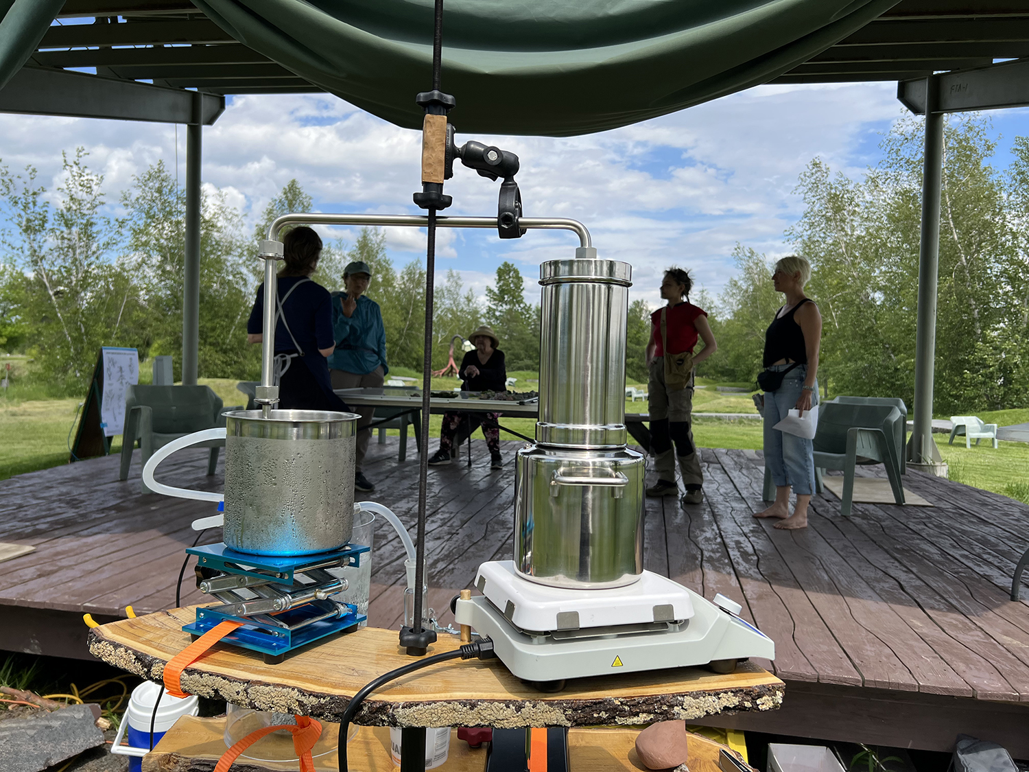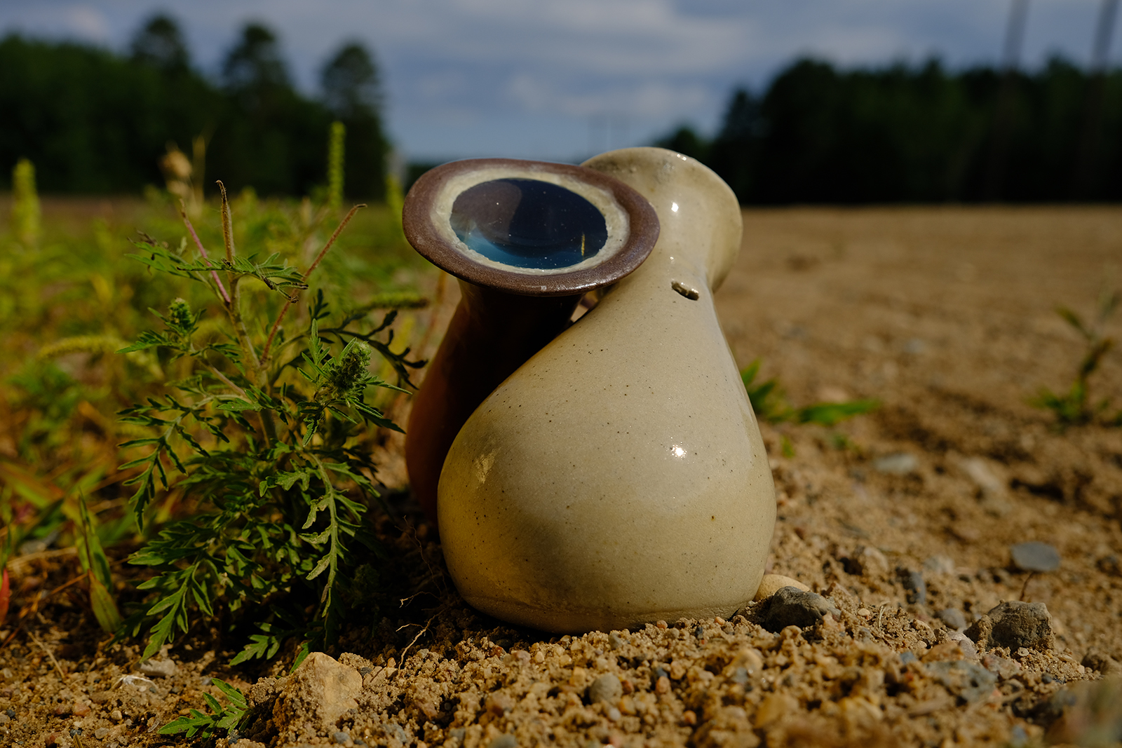 Enacting close engagement with the ruderal plant species that grow atop the overturned earth that covers the expanse of the Line 3 pipeline, Young and french followed its path from Edmonton, Alberta, to Superior, Wisconsin. Scent poems for the plants, created with workshop participants, were deposited in ceramic vessels at intervals along the way. The scented materials–composed of airborne chemical compounds used in plant communication–were made to be activated by the sun and slowly emit their signals to nearby plants. Scented petroleum materials were gathered along the pipeline to derive new scent poems for companion vessels.